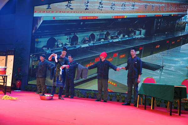 迪尼斯酒店伊川店后廚部員工表演的走心小品《傻大個成長之路》反映了公司員工的誠實品德和成長成材歷程,獲得一等獎,獎勵3000元;